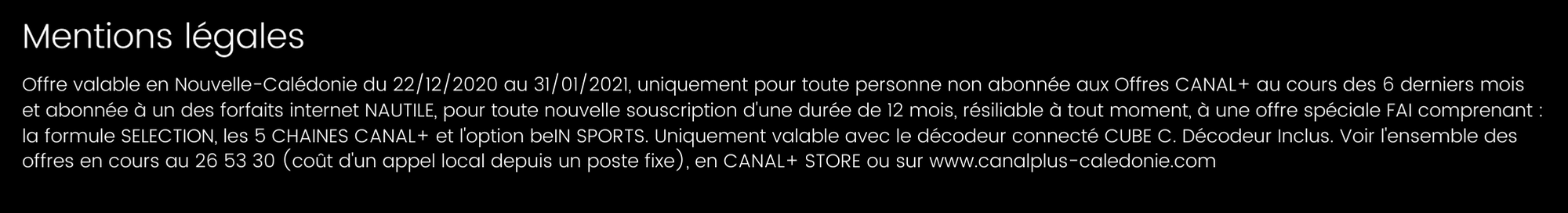 Pour bénéficier de cette offre qui vous est exclusivement réservée, vous pouvez contactez directement Canal+ Calédonie ou bien contactez-nous pour prendre rendez-vous en boutique.